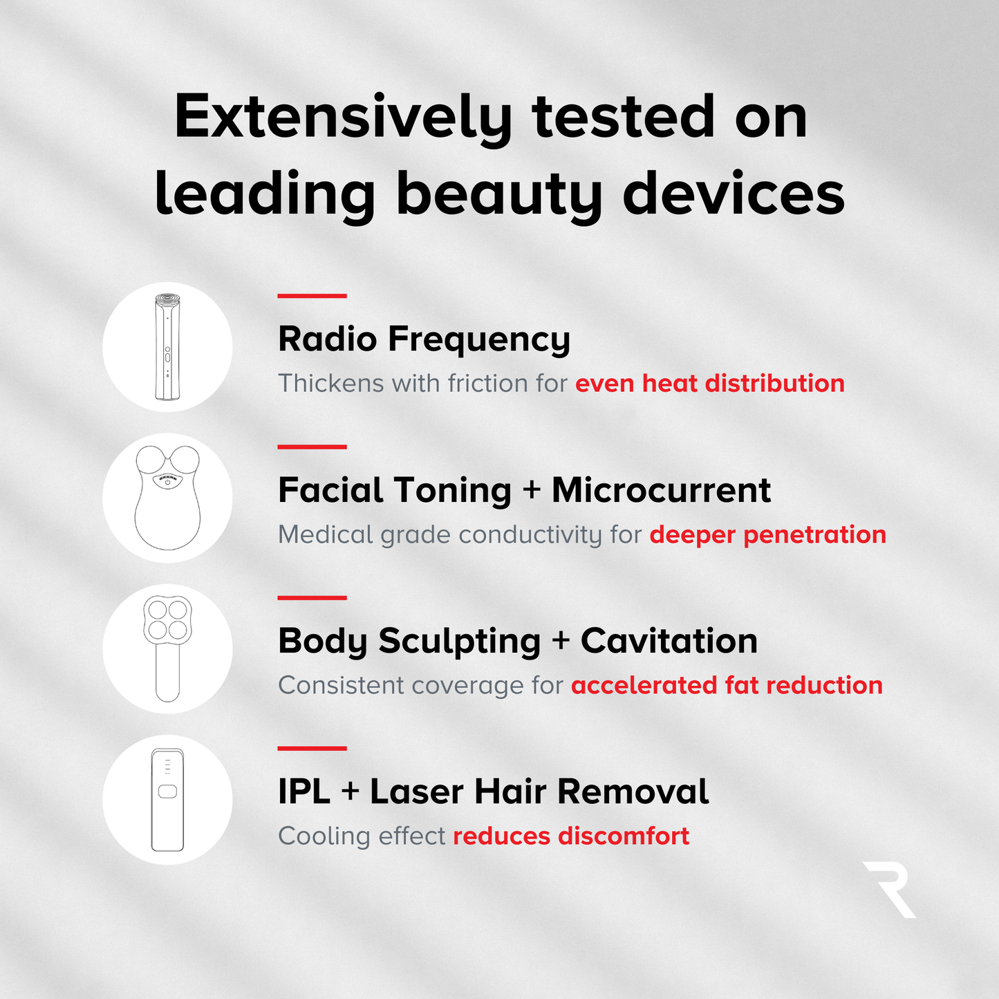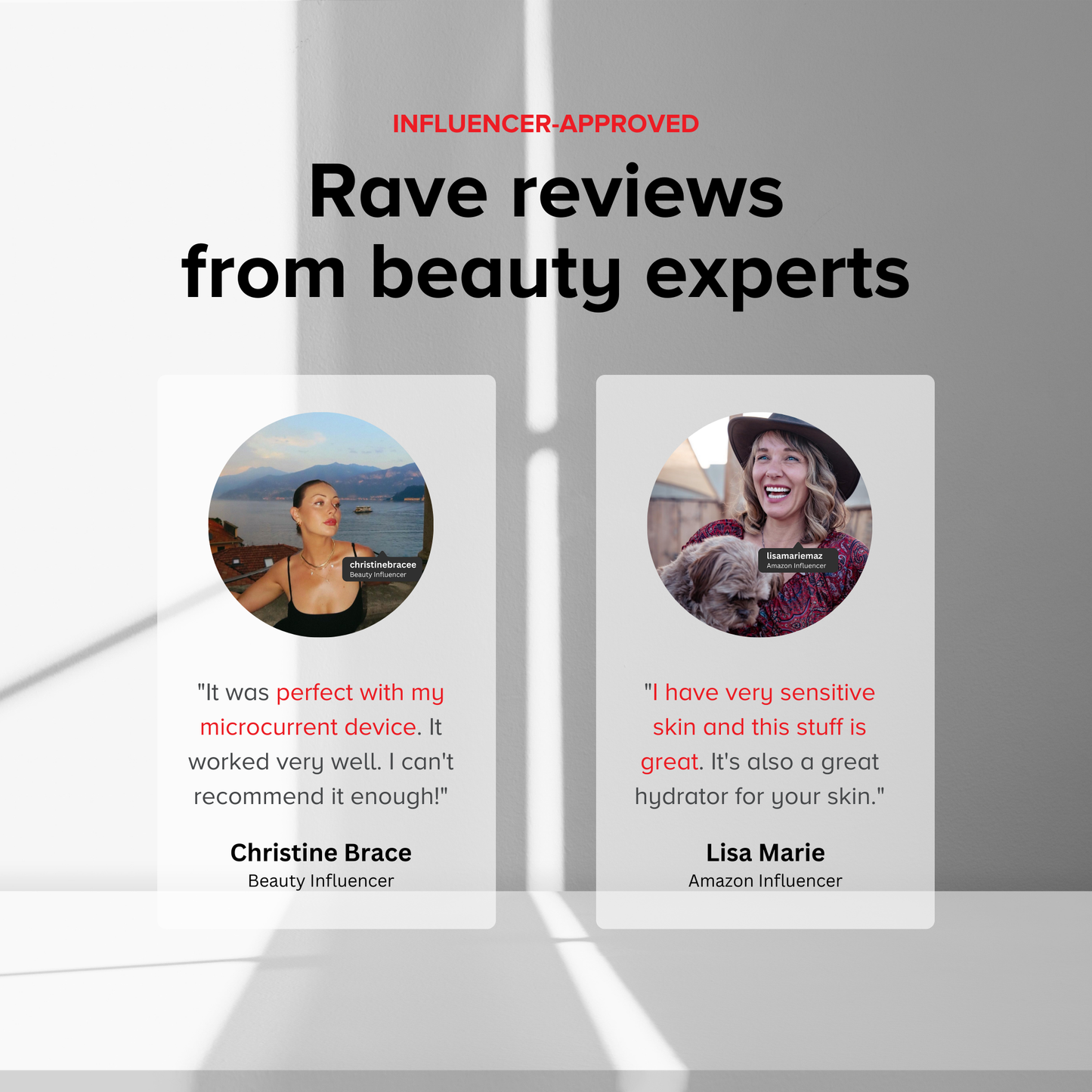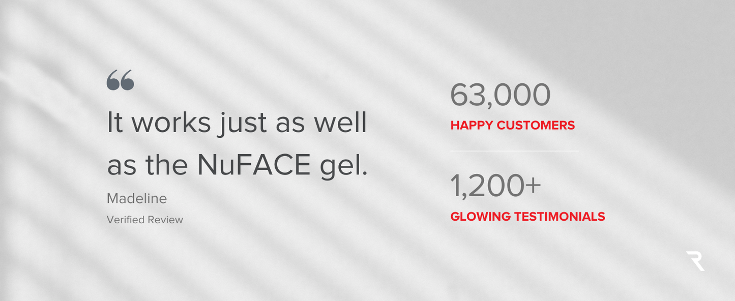 Beauty expert testimonials graphic for microcurrent conductive gel