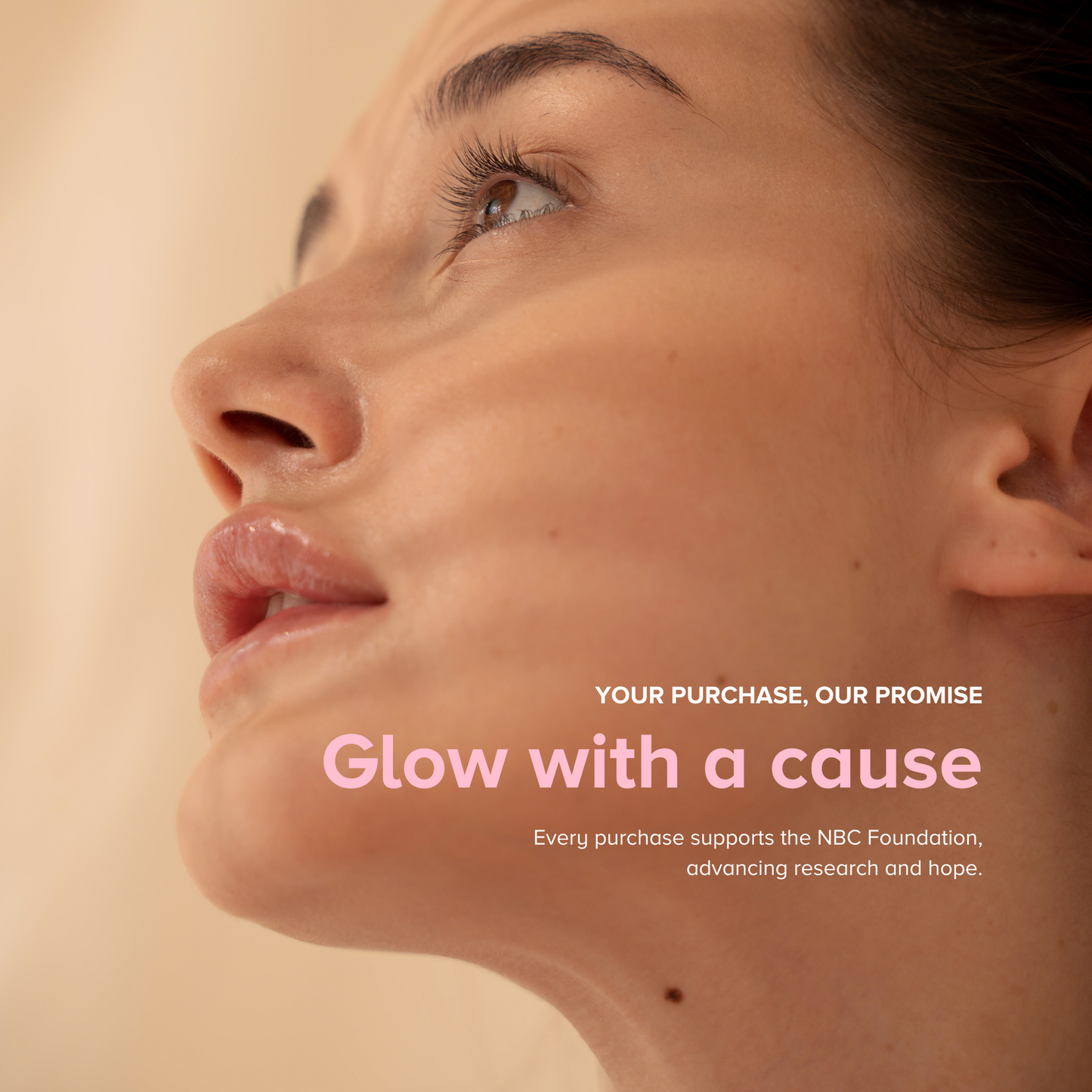 Close-up of glowing skin after microcurrent gel use—“Glow with a cause” campaign image