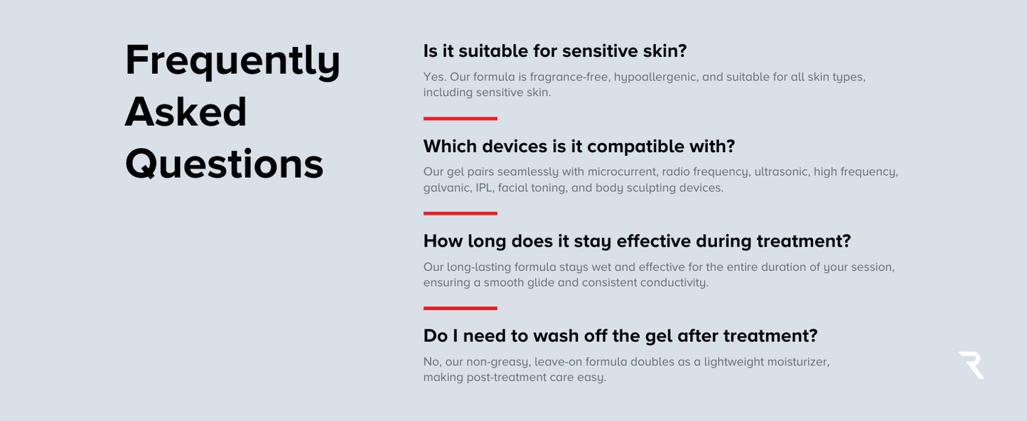 Conductive gel compatible with RF, microcurrent, cavitation, ultrasonic, IPL, and galvanic devices